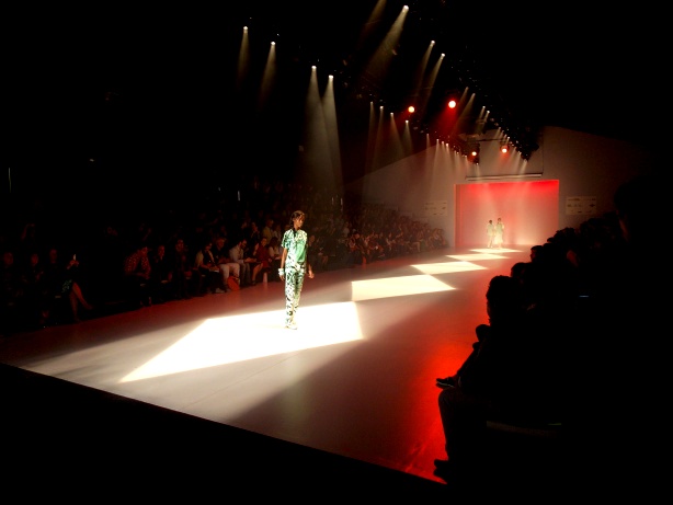 Modelo apresenta peça com estamparia selvagem em tons verde e branco durante o desfile da grife feminina Alessa, no Fashion Rio Verão 13/14, Marina da Glória.