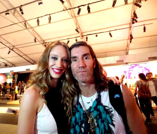 A modelo e apresentadora do canal Glitz*, Talytha Pugliesi, ao lado do stylist Felipe Veloso, no Fashion Rio Verão 13/14 (Marina da Glória).