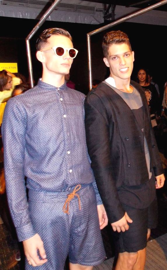 Guilherme Bravin (à direita) foi um dos modelos que desfilaram para a marca Reserva no Fashion Rio Verão 13/14, na Marina da Glória.