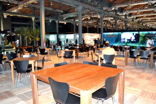 Uma visão panorâmica do restaurante “Balneário Santa Fortuna”, uma realização da produção da própria semana de moda, quando ainda o Fashion Rio Outono Inverno 2014, no Píer Mauá, não estava no seu momento de grande circulação de convidados e profissionais da área, o que viria a acontecer depois.