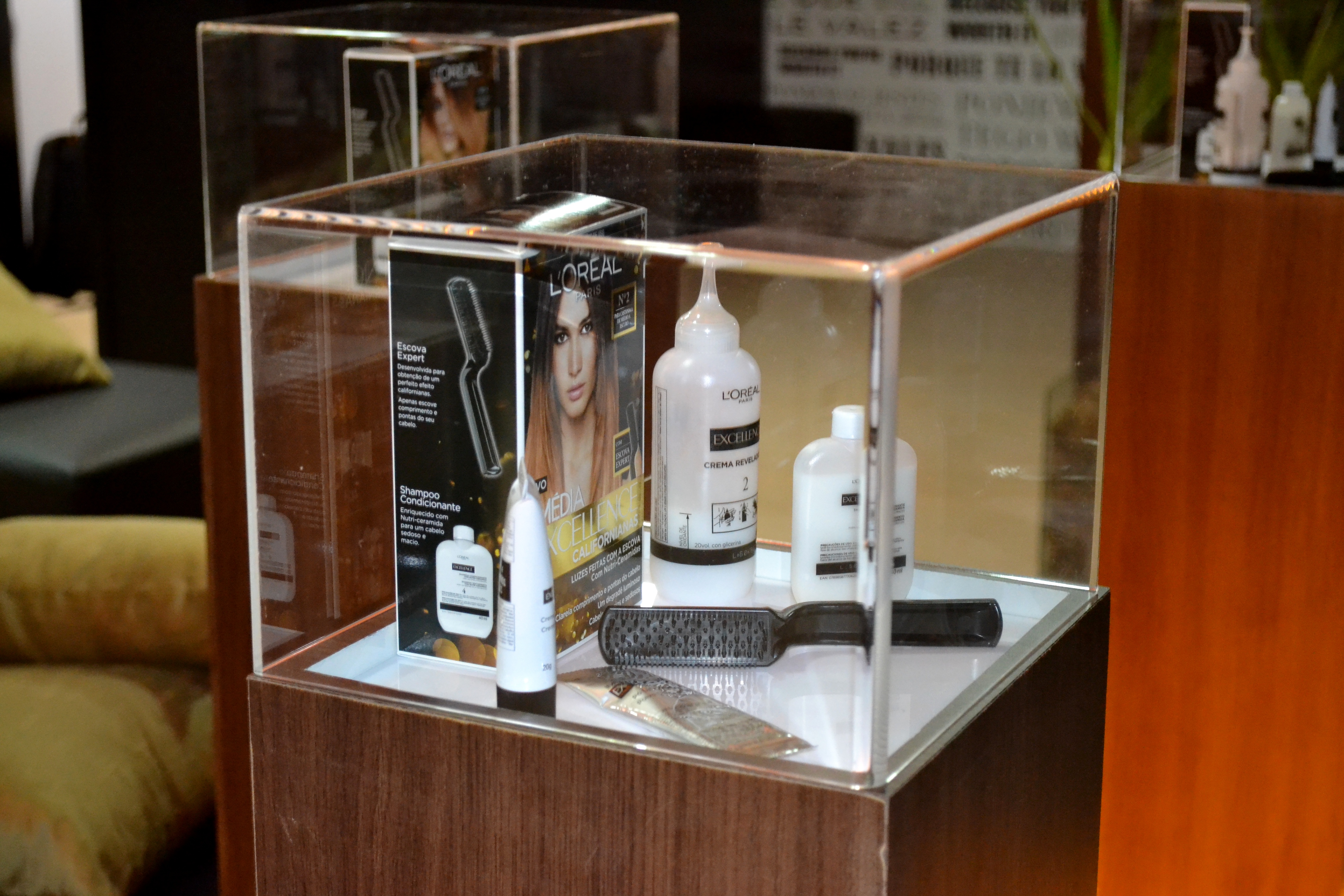 Produtos da L’Oréal, como cremes, hidratantes e afins, podiam ser observados, protegidos numa espécie de redoma em seu lounge, pelos convidados do Fashion Rio Outono Inverno 13/14 (Píer Mauá).
