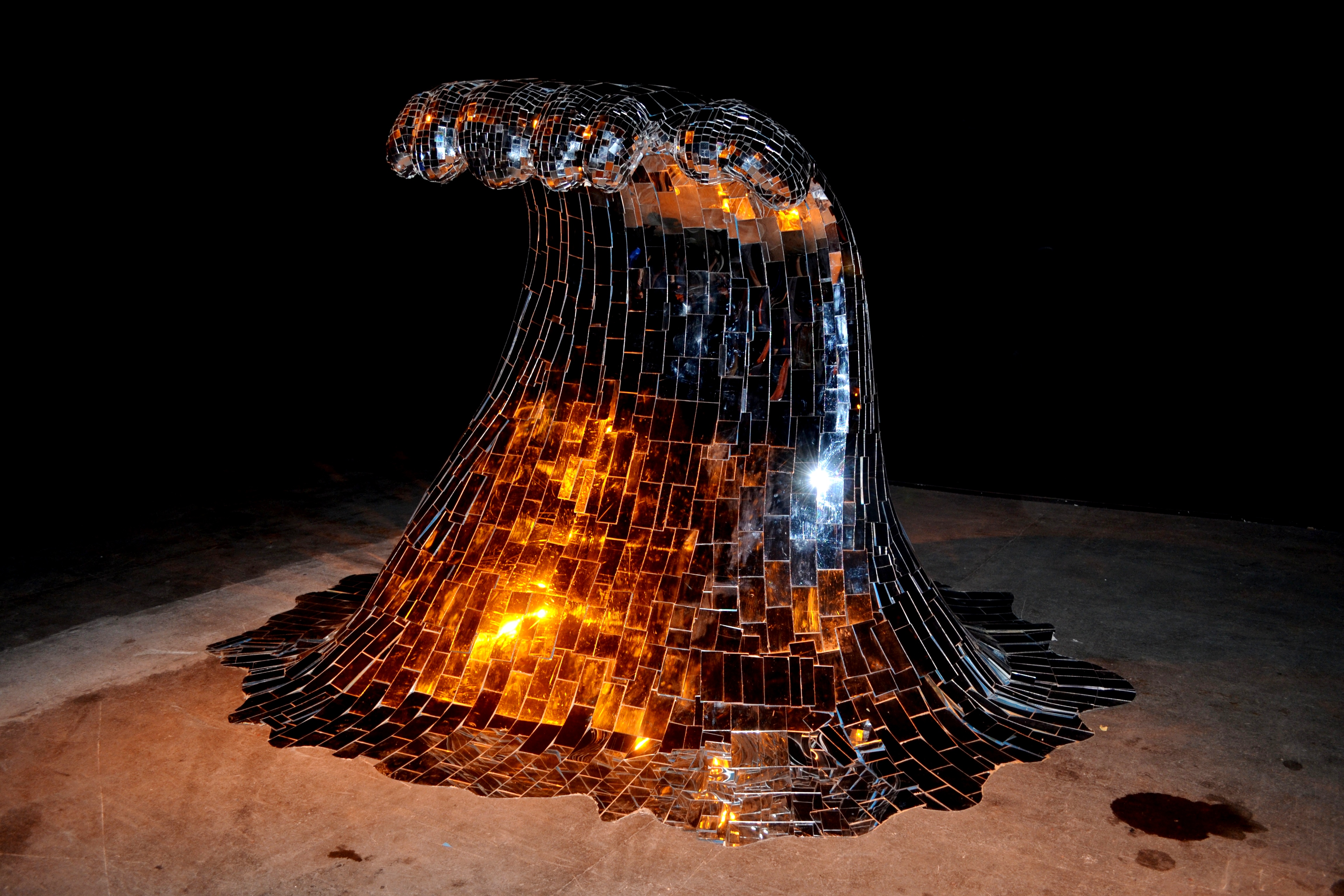 No caminho que levava a uma das principais salas de desfile do Fashion Rio Outono Inverno 2014, no Píer Mauá, havia uma onda estilizada toda ornamentada em espelhos, que serviu para que muitos convidados tirassem fotos na sua frente.