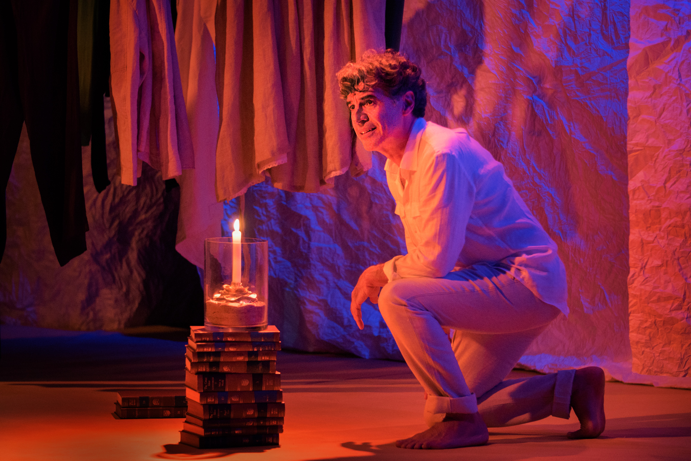 Aproveitando-se dos debates recentes de lado a lado em torno da liberação ou não das biografias não autorizadas, o título do monólogo estrelado por Paulo Betti, que está completando 40 anos de carreira, não poderia ser mais apropriado, “Autobiografia Auto-risada” (o trocadilho já nos revela um sinal da adoção do humor por parte do autor, o próprio Paulo, em seu texto, ao narrar no formato dramatúrgico citado parte da trajetória de sua vida, principalmente as infância e adolescência no interior de São Paulo, em específico Sorocaba, nos idos dos anos 50 e 60, e sua fase na EAD, Escola de Arte Dramática da USP, Universidade de São Paulo, também abordada). A proposta de se montar uma peça com viés autobiográfico é, por si só, arriscada, temerária, levando-se em conta determinados fatores, como o potencial interesse que a vida do biografado poderá causar em terceiros. Vemos muitas biografias sendo retratadas nos palcos, sejam elas musicais ou não, mas, em pouquíssimas vezes, assistimos a um espetáculo cujo protagonista é o único contador de sua íntima história real, além de codirigi-la (com Rafael Ponzi). No entanto, o que se depreende ao avaliarmos a encenação de Paulo Betti é que se obteve uma conjugação extremamente harmônica, emocionante, verdadeira, lírica e divertida (apesar de alguns momentos de notada tristeza) de dramaturgia, direção e atuação. No belo cenário de Mana Bernardes, que busca uma rusticidade poética ao dispor sobre a ribalta um largo varal com panos e roupas dependurados, pilhas de livros (há uma vela que permanece acesa em cima de uma delas durante toda a peça), um casebre formado por camadas de tecidos diáfanos, um extenso painel ao fundo do espaço cênico sobre o qual se projetam significativas e simbólicas imagens, um microfone e seu suporte e uma banqueta de madeira, testemunhamos o desfiar encantador de “causos” contados por um Paulo Betti visivelmente entregue aos seus mais honestos sentimentos e emoções. Paulo se vale de sua prodigiosa experiência no ofício, seu talento incontestável e reconhecido carisma para fazer com que a plateia não seja somente uma mera e passiva ouvinte de seus relatos, mas que seja cúmplice de sua jornada, identifique-se de algum modo com a mesma, e com o intérprete se emocione. De pés descalços, vestindo apenas uma calça off-white e uma camisa social branca (o discreto e charmoso figurino, que inclui ainda uma improvisação de saia, um grande chapéu de palha e um paletó cinza, coube a Leticia Ponzi), o ator dialoga espontaneamente com os espectadores (não se vislumbram quaisquer resquícios de barreiras que impeçam a comunicação direta entre ambos, configurando-se como um dos pontos fortes da obra), discorrendo de modo linear ou não acerca dos acontecimentos que definiram a sua identidade como homem e artista. O dramaturgo em nenhum instante se esquiva de revelar aspectos particulares de sua família de origem humilde. Utilizando-se do interessante recurso de nos informar o significado dos nomes de seus parentes, o que nos dá uma possível previsão dos respectivos perfis, somos defrontados com episódios que exemplificam com potência como se convivia em distinto período com hábitos e costumes tão peculiares, inusitados, todavia, genuinamente naturais para o universo do qual faziam parte. Há em suas, pode-se afirmar, confissões, elementos que caracterizam o comportamento de indivíduos modestos que subsistem por meio de trabalhos forçosos, sem acesso ao estudo, com uma sabedoria singular adquirida pela dura vivência, e um alto grau de misticismos e sincretismos religiosos, manifestados por preces, benzeduras, simpatias e crendices. O Paulo criança, que ora se divertia com seu prosaico pião, e ora se aprazia com um brinquedo da época que consistia em uma vara que dominava um círculo, era obrigado a encarar a morte sem nenhum tipo de máscara. Nestes tempos que nos parecem longínquos, apenas nos parecem, o infante que se deliciava com os programas de rádio e idas posteriores ao cinema, enfrentava a visão dolorosa de um animal sendo abatido para o ágape. A opressão sexual era inclemente, alavancada por lendas e mitos. Os meninos recorriam às luxuriosas publicações de Carlos Zéfiro. A atriz francesa Michèle Mercier era objeto recorrente de fantasias inescapáveis. O ator, temporão, o caçula de 15 irmãos, evidencia que sempre manteve laços afetivos acentuados com o seu clã. E nos deixa transparecer que mesmo em meio a tantas adversidades havia uma felicidade implícita, uma ingenuidade que não se vê mais na atualidade. Desenha-se uma nostalgia sem teor melancólico. Em todo o conjunto cênico se percebe a inserção coerente de regionalismos, encontrados nas canções e no vocabulário usados. Paulo Betti traz para o seu texto citações de poetas como Menotti Del Picchia. Aliás, em bastantes passagens de sua dramaturgia, deparamo-nos com fraseados rimados, jogos de palavras. O intérprete em certas ocasiões canta músicas de caráter regional que lhe são preciosas com plena sensibilidade. Todo o processo de narração da história é escorado eficientemente nas projeções contínuas de imagens, provocando-nos estimulante curiosidade, que funcionam quase como um “segundo personagem”. Fotos antigas, certidões, documentos, diplomas, registros históricos servem para realçar e oferecer uma maior verossimilhança aos fatos descritos. A direção de Paulo Betti e Rafael Ponzi (assistência de direção de Juliana Betti) enfatiza a presença de um artista, com sua emoção, sobre um tablado, revelando, assumindo, confessando, expondo a verdade do cidadão Paulo Betti no tocante às suas experiências vividas. Muitas delas sofridas. Temos a nítida impressão de que se trata de um processo catártico de um consagrado ator, que por alguma razão louvável precisou lidar com memórias delicadas de seu passado. Não é fácil tocar e