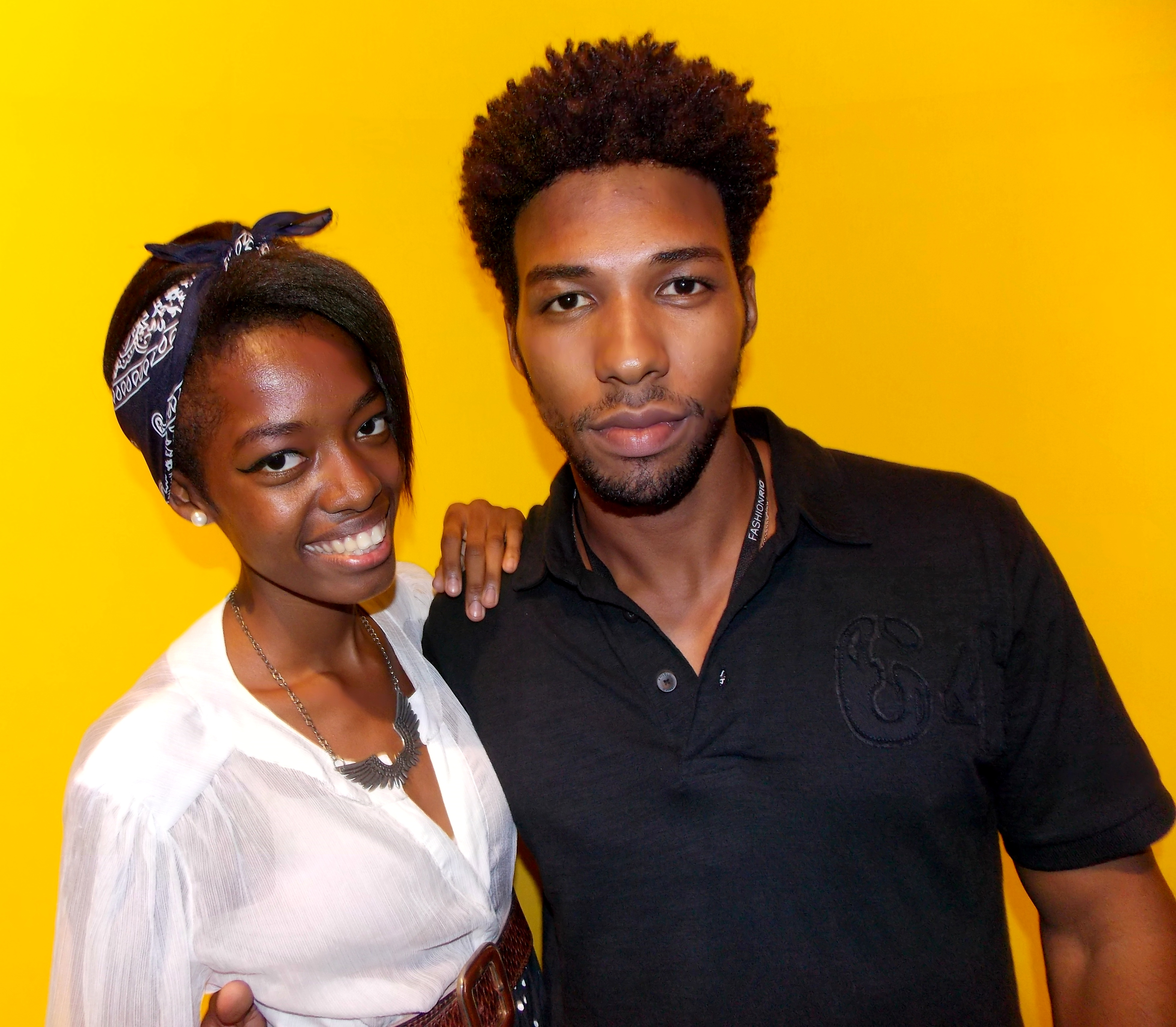 Os modelos Mayra Sallie (40° Models) e Saulo Leitte (40° Models e Elian Gallardo Models), no Fashion Rio Verão 13/14 (Marina da Glória).