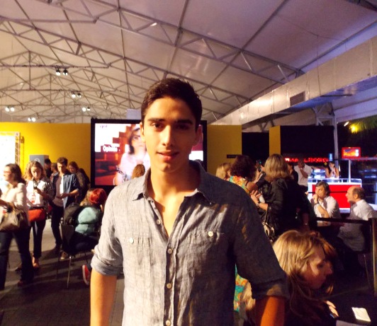 A modelo e apresentadora Ellen Jabour posa ao lado de fãs para os fotógrafos, no Fashion Rio Verão 13/14, na Marina da Glória.