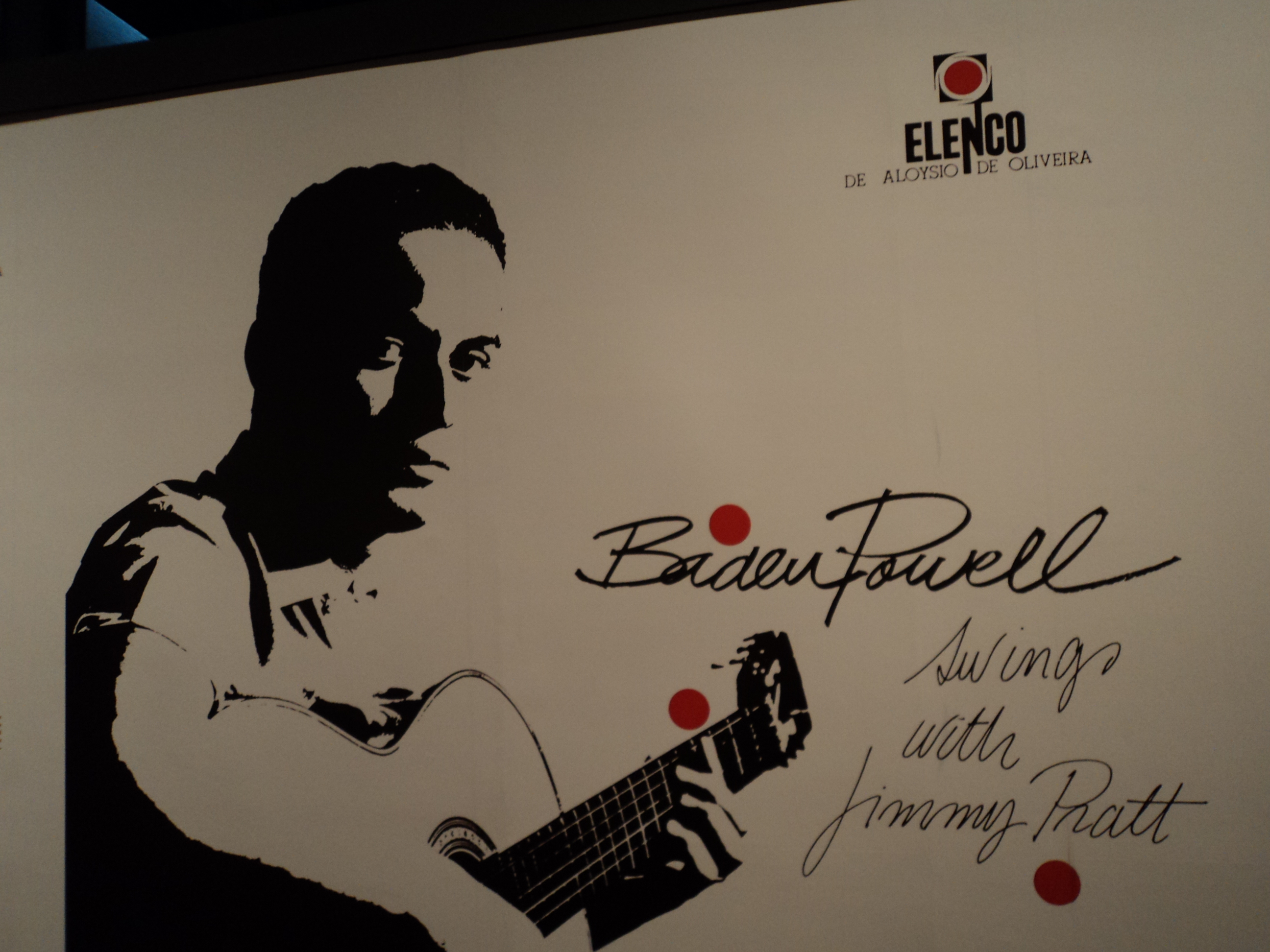 Reprodução da capa do LP, lançado em 1963 pela gravadora ELENCO, do violonista brasileiro Baden Powell juntamente com o baterista americano Jimmy Pratt, em exposição na área dedicada à bossa nova, no Fashion Rio Outono Inverno 2012, realizado no Píer Mauá.