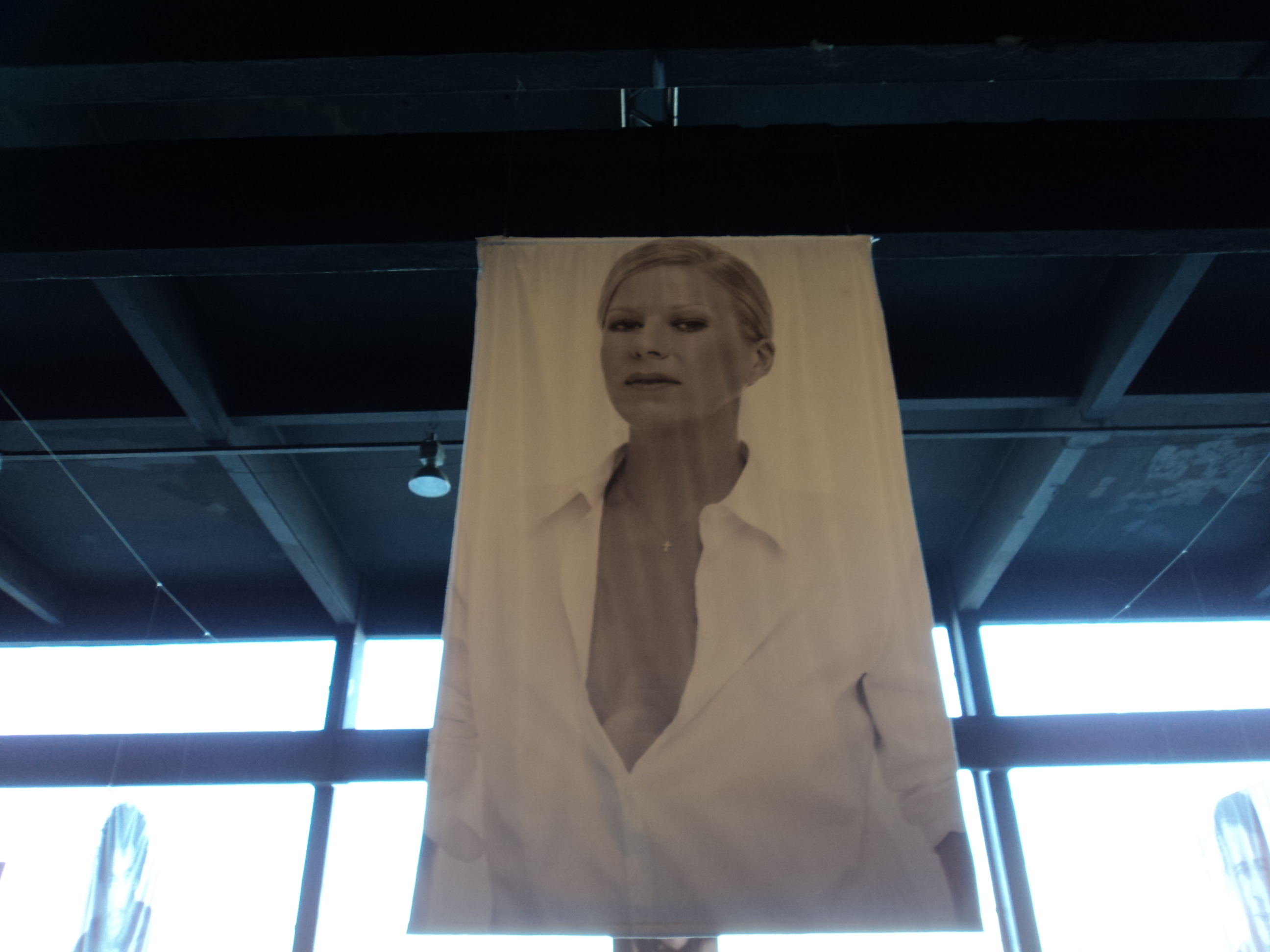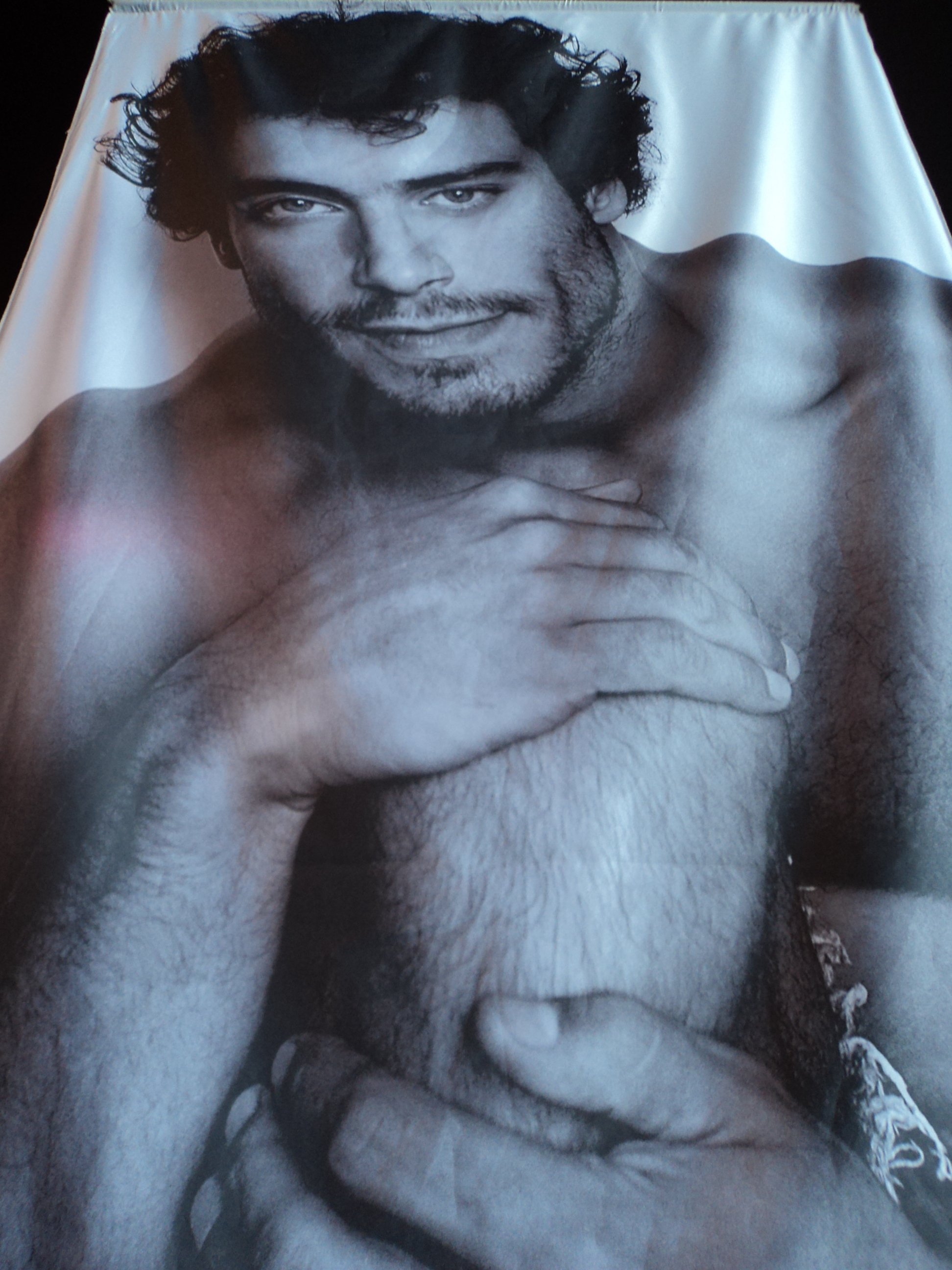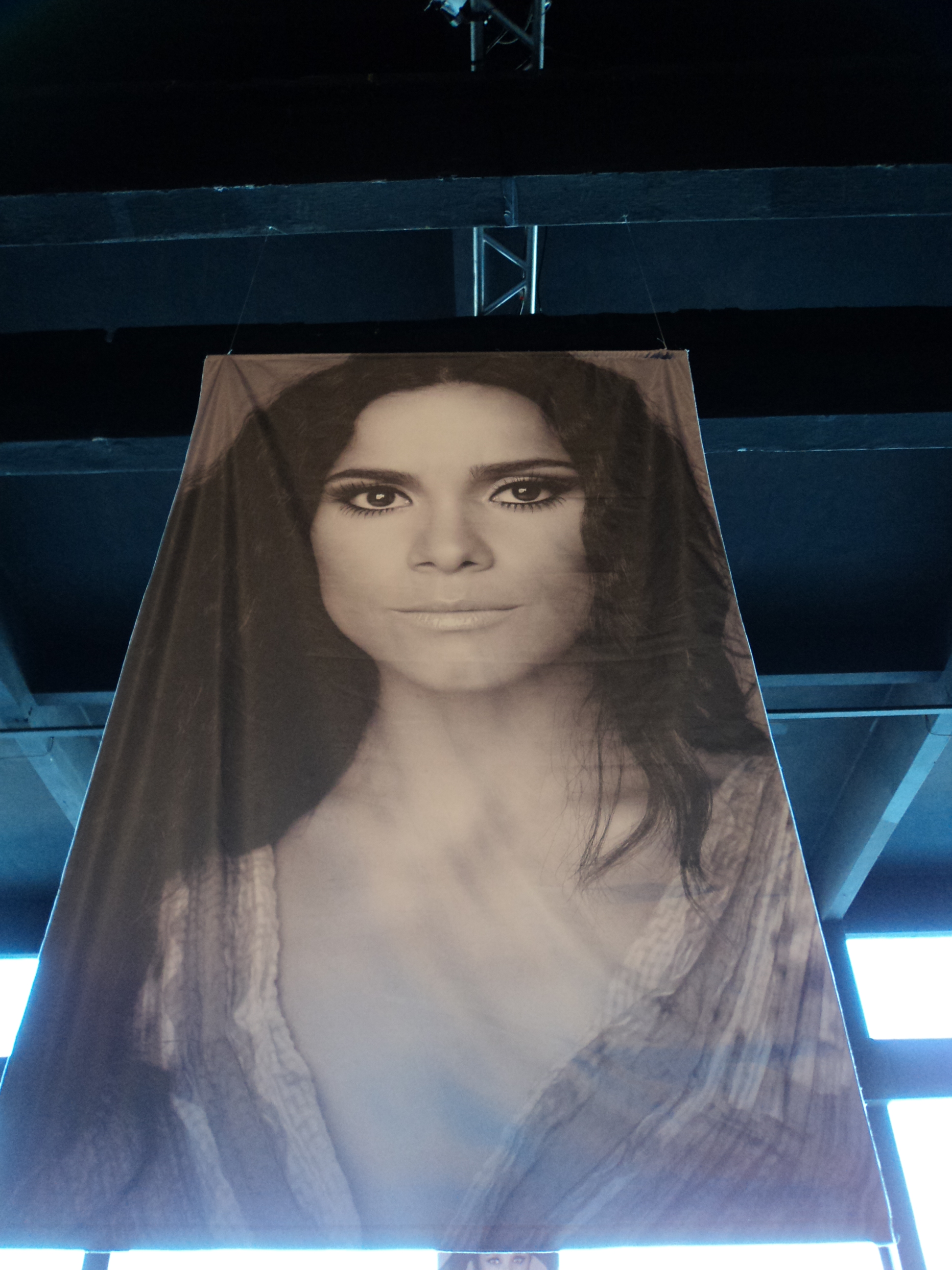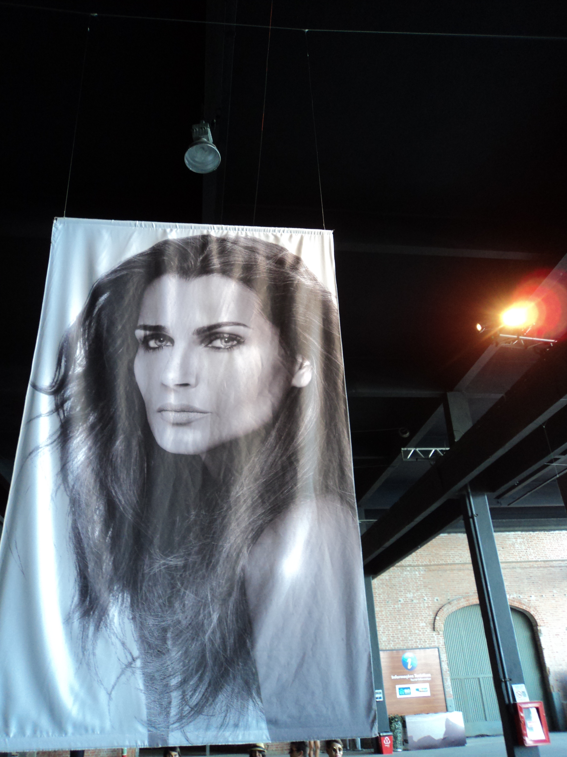 Grande painel estendido na entrada da mostra dedicada à bossa nova com seu respectivo slogan, “Essa Bossa é Nossa”, que teve a curadoria do músico Charles Gavin, no Fashion Rio Outono Inverno 2012, realizado no Píer Mauá.