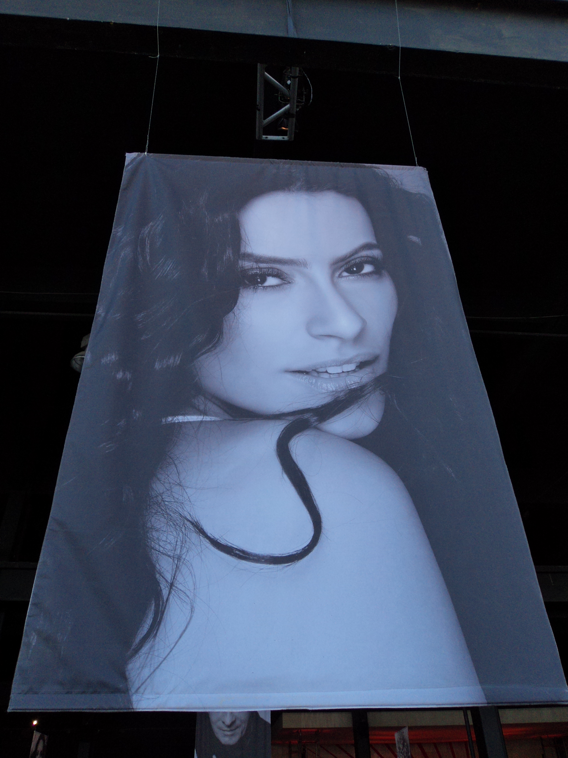 Ampliação da foto da apresentadora Angélica tirada por Fernando Torquatto, em mostra montada no Píer Mauá, durante o Fashion Rio Outono Inverno 2012.