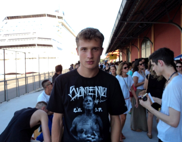 O ator e comediante David Pinheiro no Fashion Rio Outono Inverno 2012, no Píer Mauá.