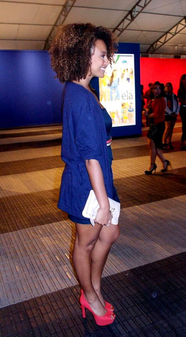 A atriz Sheron Menezzes, que está no ar em “Babilônia”, novela de Gilberto Braga, Ricardo Linhares e João Ximenes Braga, no horário das 21h da Rede Globo, como a advogada Paula, exibe o modelo que estava vestindo para os fotógrafos, o qual podemos descrever como um vestido azul com bojo meia taça, casaco num tom azul mais suave, dois finos cintos branco e rosa, e tamancos combinando com esta última cor, no Fashion Rio Verão 13/14, na Marina da Glória.Foto: Paulo Ruch