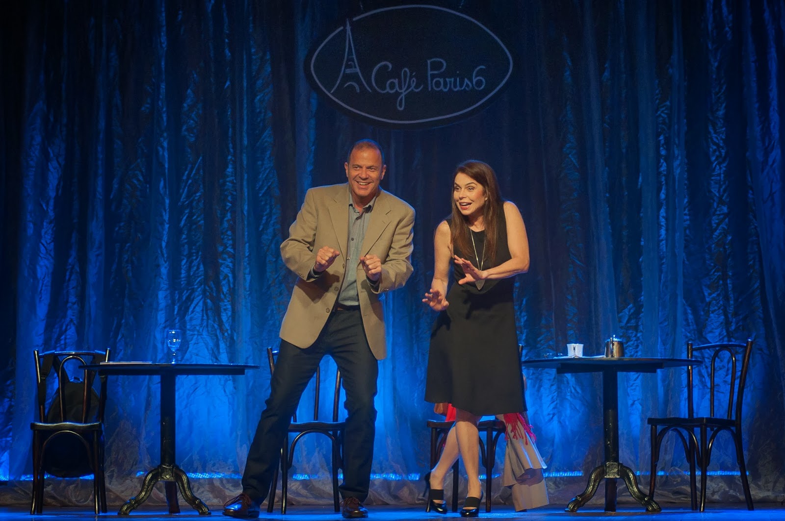 Foto: Divulgação do espetáculoNo Boulevard Montparnasse, havia um café. No meio do café, ao som de “Vouz qui Passez Sanz me Voir”, dois jovens turistas, vítimas do acaso e/ou destino, encontram-se, e acreditam ser cada um deles “o amor de suas vidas”. Ela (Françoise Forton), ex-professora de Francês “audiovisual”, brasileira, de passagem por onde as luzes jamais se apagam. Ele (Aloisio de Abreu), brasileiro, resolveu conhecer o país da Nouvelle Vague por meio de uma excursão, na qual, segundo Ela, o rapaz deveria optar por visitar apenas o Louvre, ou o Arco do Triunfo ou a Torre Eiffel. Ainda sobre o rapaz, este prefere degustar um Beaujolais pela manhã, ao contrário dela, que estima uma xícara de chá. Ambos possuem algo em comum: a paixão avassaladora e convicta pelos grandes cantores franceses, inclusive Jean Sablon. O moço decide então cortejá-la no idioma local, e é “desmascarado” não somente pela brasilidade e respectivo acento, mas por “traiçoeiro” maço de Hollywood. Numa troca constante de informações e referências sobre a cidade em que estudantes num maio de 68 fizeram valer suas potentes vozes, o par tenta se aproximar, porém o beijo tão esperado jamais se consuma. Polanski, e um de seus sucessos, “Lua de Fel”, com Emmanuelle Seigner, é lembrado pela mulher de bonitos cabelos ruivos. A citação do longa-metragem não é a forma mais adequada para se tentar iniciar um romance, pois aquele trata da dominação masculina pela feminina. Entre o rosário de conversas e monólogos, Françoise e Aloisio interpretam lindamente o que há de melhor no romantismo do cancioneiro francês do século XX, como Edith Piaf (“La vie en rose”), Charles Aznavour, Juliette Gréco, o já citado Jean Sablon, Charles Trenét (“La Mer”), Françoise Hardy e Silvie Vartan. Nossos ouvidos são afagados com “C’est Si Bon”, “Je ne regrette rien” e uma inspirada versão de “Garota de Ipanema”. Nos muitos minutos de colóquio fala-se que Paris potencialmente é “a cidade das despedidas”, fato comprovado por antológicos filmes, como “O Último Tango em Paris”, de Bertolucci, “O Último Metrô”, de Truffaut, e “A Última Vez Que Vi Paris”, de Richard Brooks. Ela, com sua “clutch”, e ele, com sua negra mochila, partem. Seus rumos são retomados no Brasil, terra também onde a música se faz soberana. Ele se torna jornalista de um site de fofocas, casa-se, e para sua estupefação, com uma companheira que chama Yves Montand de “chato”. A separação lhe fora inevitável. Ela viveu por quase duas décadas com o mesmo homem, teve filhos, e ao vê-los crescidos e encaminhados, e após a morte do marido que saboreou literalmente pela última vez um “boeuf bourguignon”, fenecendo com rosto enfiado no clássico prato da “haute cuisine”, retorna a Paris. Ele faz o mesmo. E reencontram-se no velho Café Paris 6, em Montparnasse. Algo mudou, como poucos fios de cabelo que se perderam e centímetros que “escapuliram”. O principal resistiu ao tempo: o amor. No sensível e bem-humorado texto do jornalista e dramaturgo Artur Xexéo, “Nós Sempre Teremos Paris” (inspiração na célebre frase da cena derradeira do marco cinematográfico de Michael Curtiz, lançado em 1942, “Casablanca”), com direção da experiente e respeitada Jacqueline Laurence, e produção de Eduardo Barata, percebe-se a demonstração sem pudores, às escâncaras, do compreensível fascínio do autor pelas melodias francesas, e o mesmo quis, realizando com plena satisfação, transformá-lo em linguagem cênica atraente. Não coincidentemente, creio, duas profissionais com ascendência (Françoise Forton) e nacionalidade, porém naturalizada brasileira (Jacqueline Laurence), francesas, foram com acerto convocadas para a obra, o que de certo modo confere uma familiaridade ao espetáculo. Jacqueline toma para si a mesma sensibilidade com que Artur escreveu o texto, e enfoca a direção com notório caráter objetivo na habilidade irrefutável dos atores de entoarem as belas canções (preparação vocal de Danillo Timm), com a direção musical de Marcelo Nogueira e a assistência de direção musical de Camila Dias. A diretora “extrai” o que de melhor os intérpretes podem nos oferecer, seja na clara aptidão para vivenciar momentos mais intimistas seja na facilidade com que lidam com o humor e com a bem-vinda interação com o público. Não foram raras as vezes em que a plateia cantou junto com os artistas, dando explícita resposta de que “embarcaram” na peça, ao ponto de, ao final, “exigirem” um bis, prontamente atendido. Françoise Forton e Aloisio de Abreu cumprem com elegância e convencem de modo espontâneo ao assumirem seus papéis, recebendo de imediato uma aceitação empática dos espectadores. A cenografia de Massimo Esposita não se exime de buscar o enxuto, o exato, o básico, sem contudo abjurar dos elementos que bem resumam a ambiência parisiense, na recriação de um típico café com duas pequenas mesas circulares, somadas a cadeiras de madeira, e uma placa superior com o nome do estabelecimento. Seríamos injustos se não mencionássemos a presença indispensável, e que dá relevância extra à produção, de músicos tocando ao vivo instrumentos como violão (Roberto de Brito) e piano e acordeom (Priscila Azevedo). Os figurinos de Valéria Stefani priorizam o charme e a sobriedade, fugindo do exagero ou extravagância. Françoise veste “trench coat” cru, um tubo preto, xale vermelho, acessórios e “scarpins”. Aloisio se apropria de terno de cor ocre, camisa clara, calça escura e sapatos. A iluminação de Adriana Ortiz procura alcançar, e atinge com êxito, um colorido que impinge vivacidade e alegria à encenação, fazendo jus ao aposto que Paris recebeu, “Cidade Luz”. O azul, o amarelo, o vermelho, o vermelho alaranjado, o rosa, o lilás e o indefectível branco “explanam” com efic